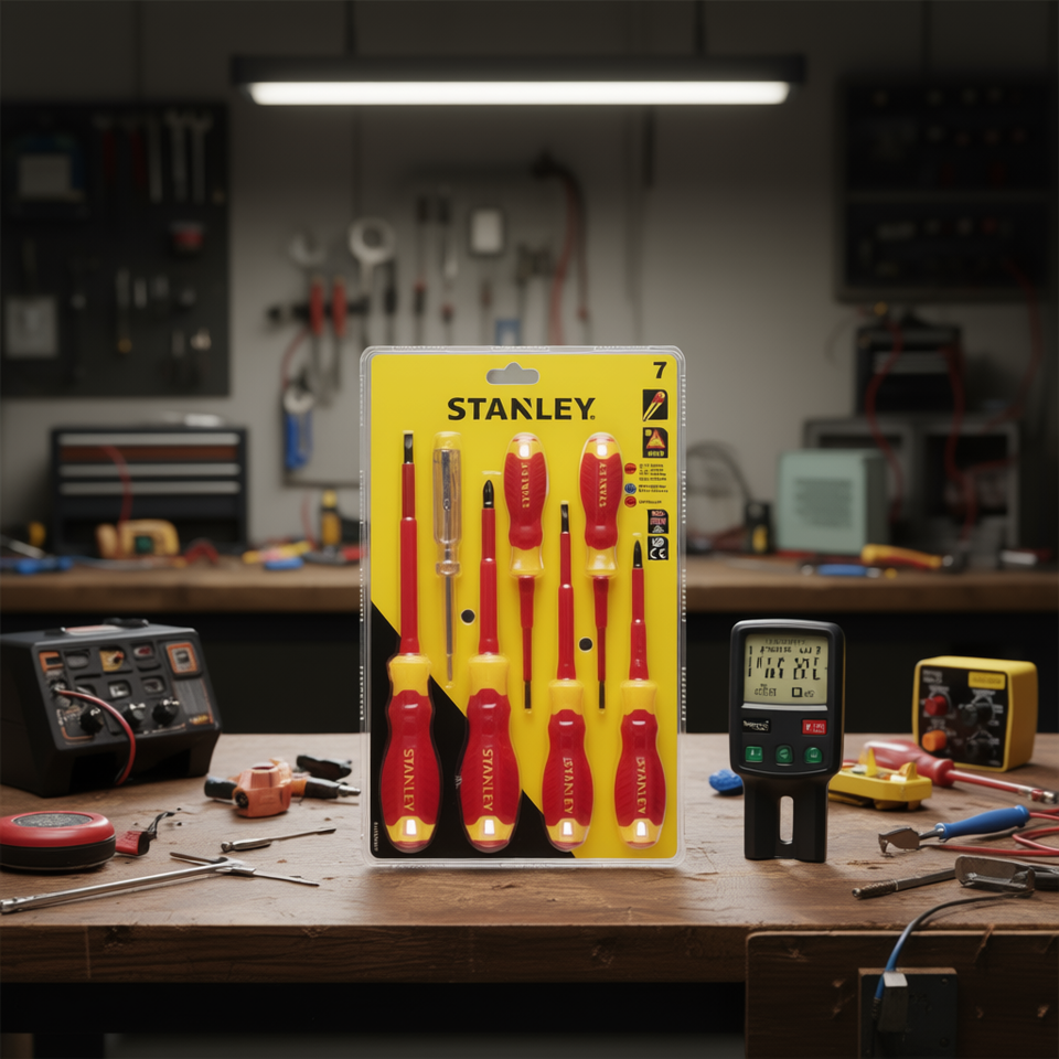 Juego de Destornilladores Stanley de 7 Piezas con Aislamiento VDE y Probador