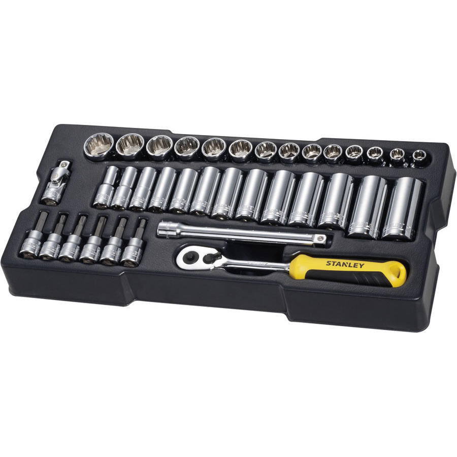 Juego de Llaves de Tubo Stanley de 3/8 Pulgadas, 36 Piezas, Cromadas, Herramientas de Reparación Automotriz