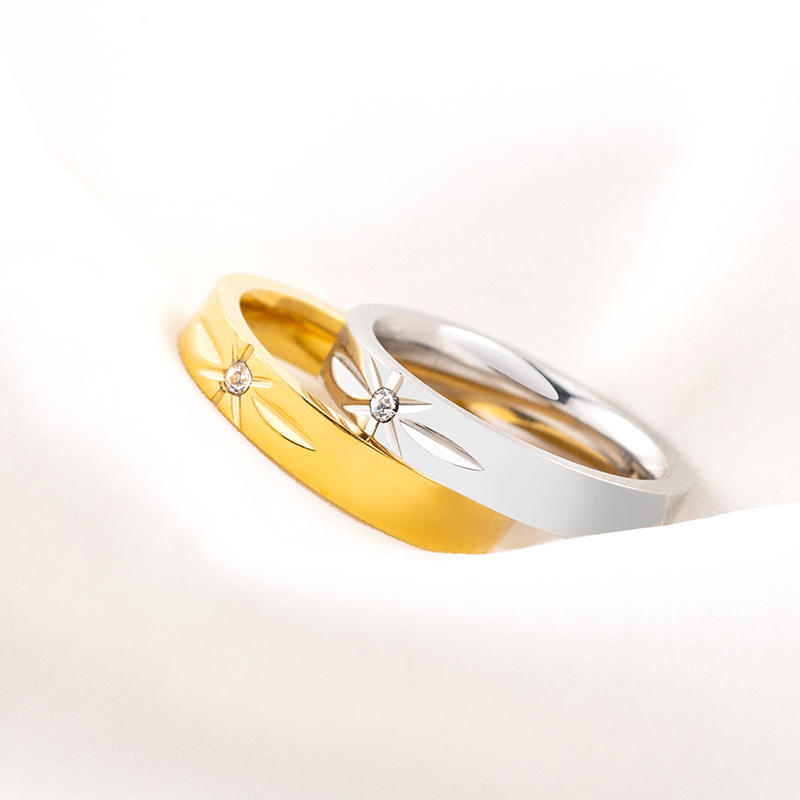 Anillos de Pareja con Diseño de Estrella y Diamantes, Chapados en Oro, de Acero de Titanio, Joyería de Boda Unisex XYR0088