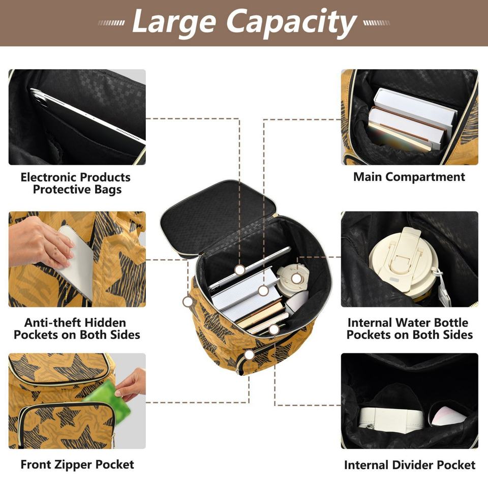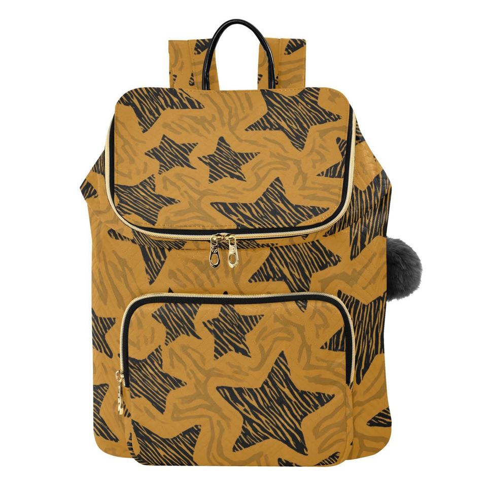 Mochila de Moda para Mujer con Diseño de Estrella, Bolsillo Grande con Cremallera Dorada, Logotipo Personalizado y Llavero de Bola Esponjosa