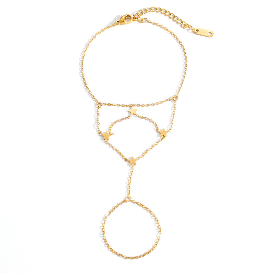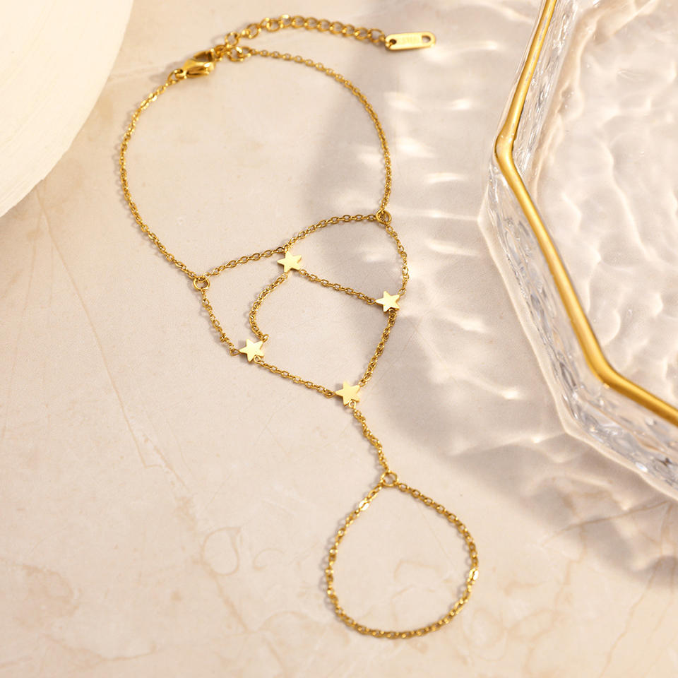 Pulsera de Diseño de Estrella en Capas, Chapada en Oro de 18k, Cadena de Mano de Acero de Titanio, Joyería de Moda, Regalo