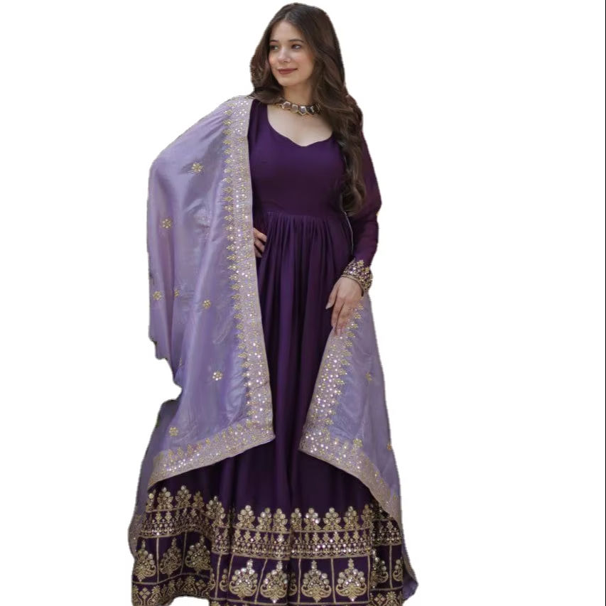 Estrella Georgette con bordado Zari Sequins-Work Explore siluetas como conjuntos de línea A, ajustes rectos con dupattas Set para la venta