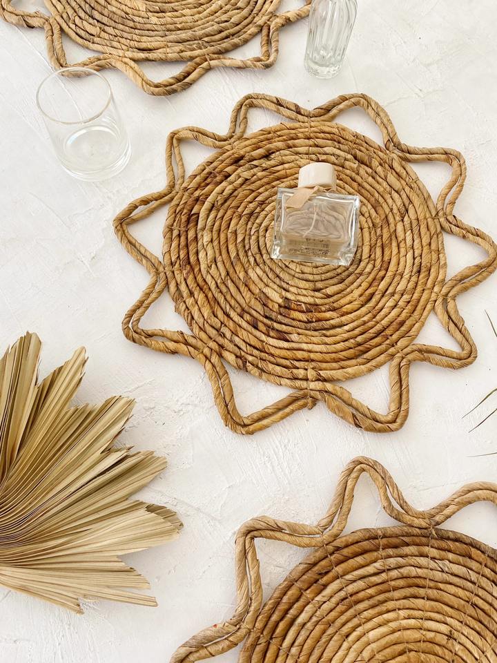 Star Natural Water Hyacinth Placemat:Size: D15 inch
