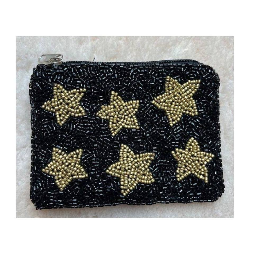 Monedero Pequeño de Tela con Cuentas y Patrón de Letras, Cierre de Cremallera, Bolsa Bordada a Mano para Llaves, Efectivo, Tarjetas, Maquillaje, Uso Multipropósito, Regalo