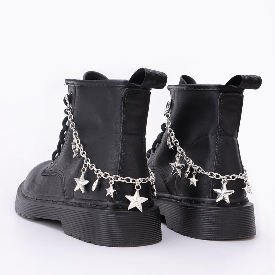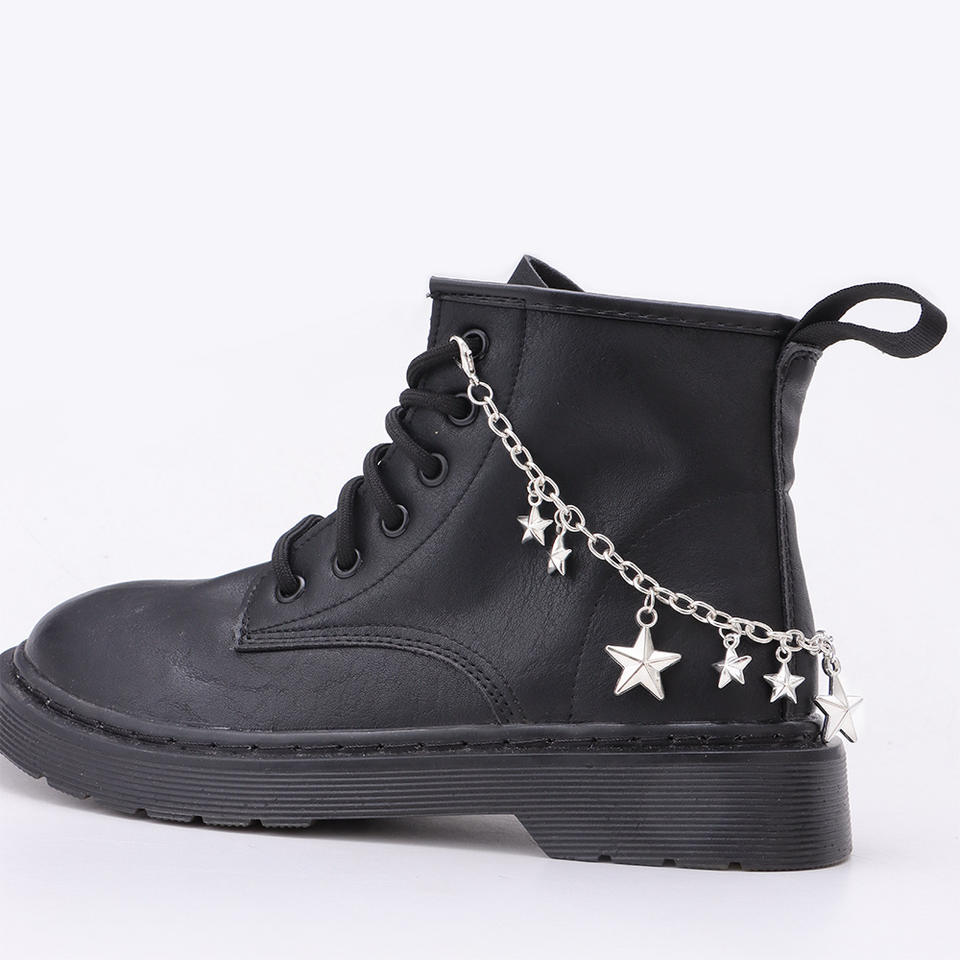 Cadena con colgante de estrella para botas de combate, punta redonda, suela de goma, accesorio de moda, color blanco K