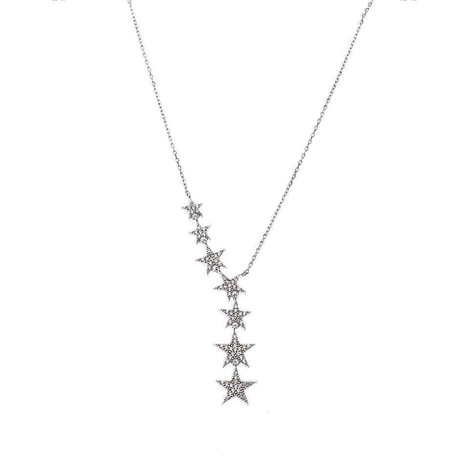 Collar con Colgante de Estrella, Chapado en Rodio, con Circonita Cúbica y Cadena de Serpiente, Joyería de Moda para Mujer, para Uso Diario y Fiestas