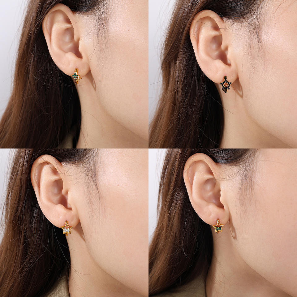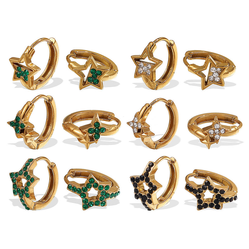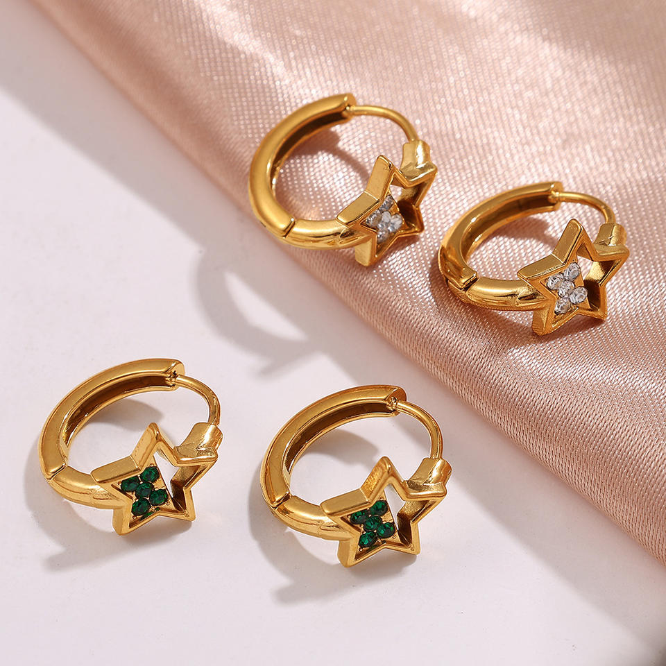 Pendientes de Aro con Pedrería en Forma de Estrella, Chapados en Oro, de Acero de Titanio, para Uso Diario de Mujer, con Engaste de Bisel, Primavera 2025