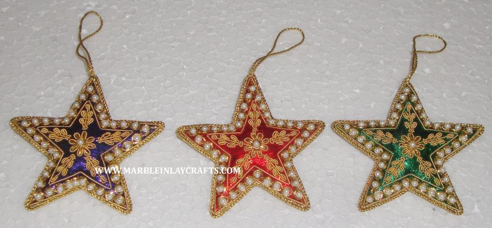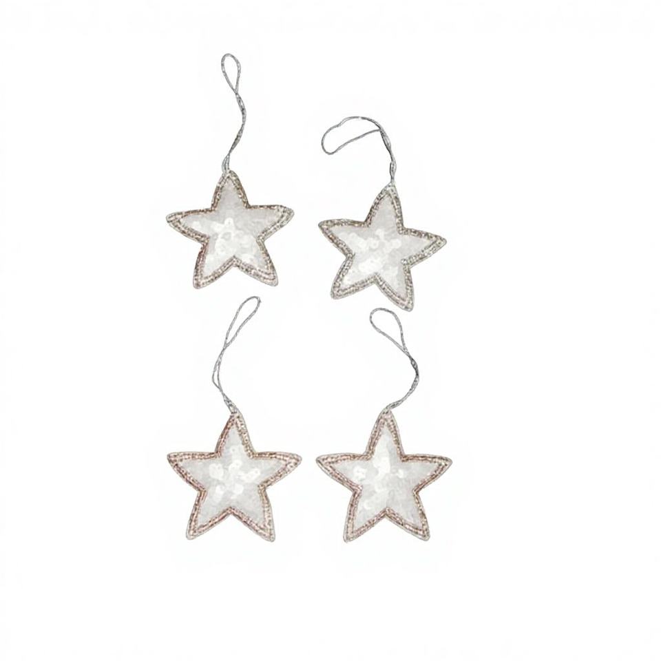 Adornos colgantes para árbol de Navidad con diseño de estrella, bordado de zari plateado y trabajo con cuentas, para usos múltiples.