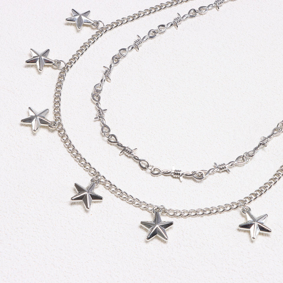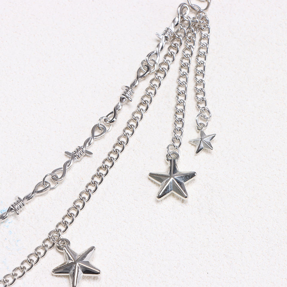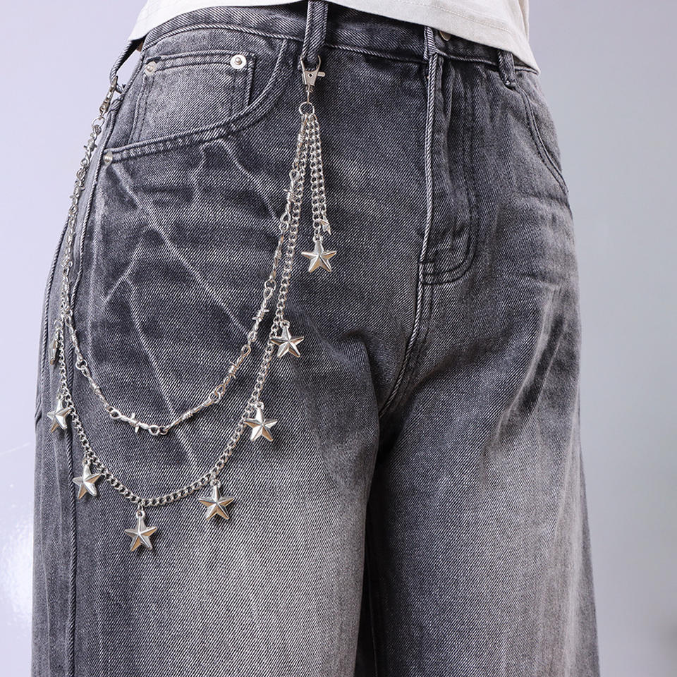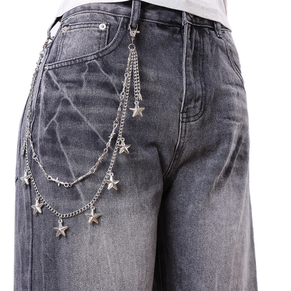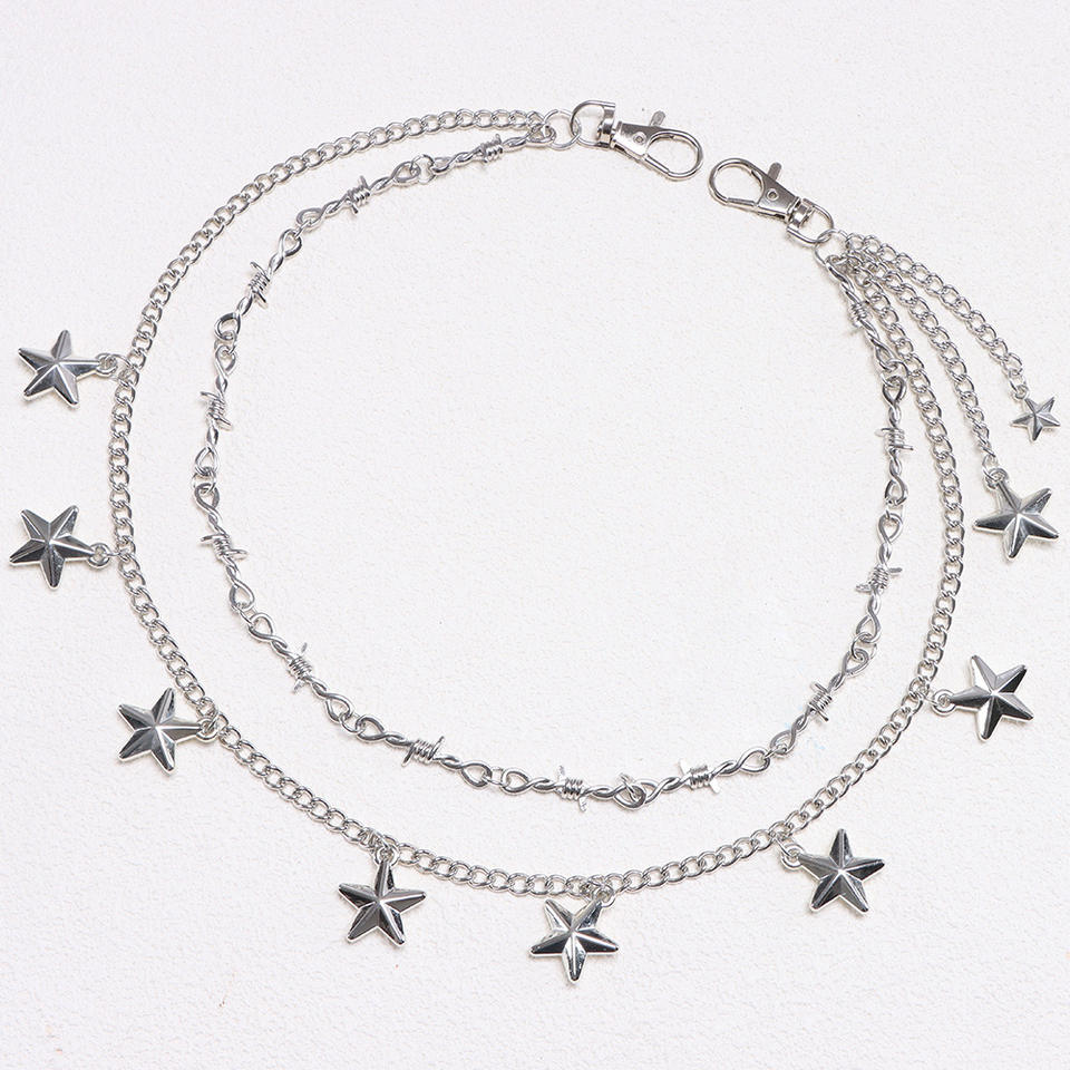 Cadena de cintura de estrella de varias capas, accesorio de metal para jeans estilo hip hop punk para mujer, cadena corporal de moda casual con estrella de aleación de zinc con púas