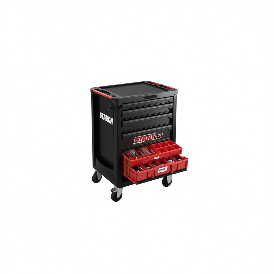 Juego de herramientas StarTech de 516 piezas con gabinete rodante y compartimentos de almacenamiento organizados para uso en taller