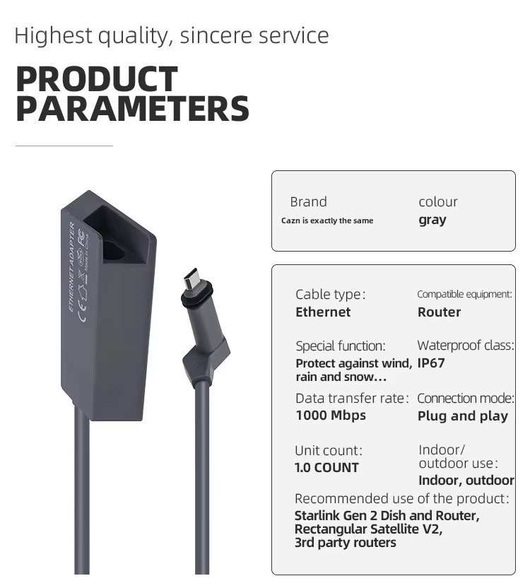 Uso:Trabajar ampliamente con la mayoría de los dispositivos de conector RJ45. Para, Para TV, impresora, conmutador de red, teléfono VolP, PC, R, Starlink Satélite Rectangular V2