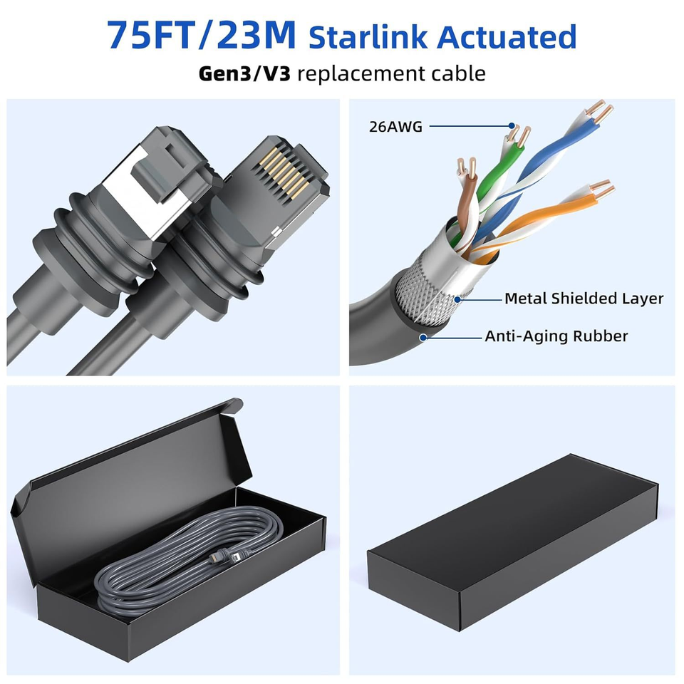 Starlink Gen3 Cable Satélite Reemplazo Estándar V3 Cable para Starlink Rectangular Satellite V3 Starlink Cable RJ45