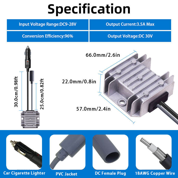 Adaptador Mini Starlink que aumenta la tensión de 12V/24V a 30V 3.5A, Adaptador de Encendedor de Cigarrillos para Automóvil a Convertidor de Corriente Continua Hembra para Camiones, Vehículos Recreativos y Automóviles