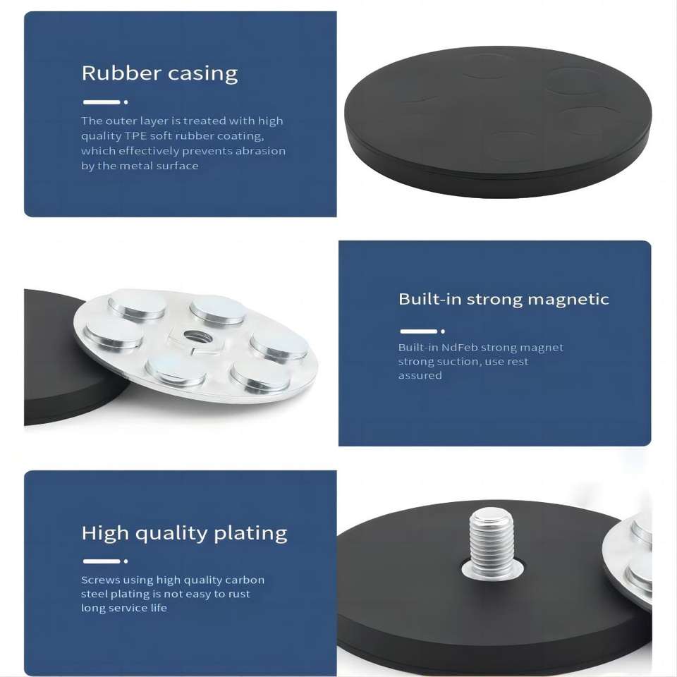 Uso de imanes de olla recubiertos de caucho:Base de lámpara industrial automotriz, luz de trabajo, accesorio de cámara Mase