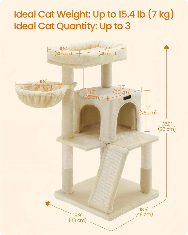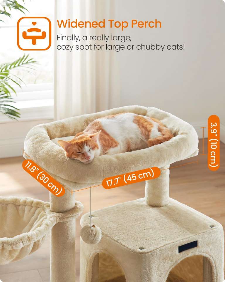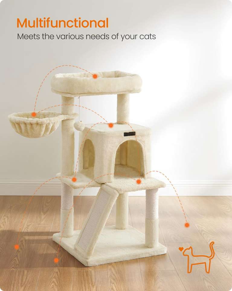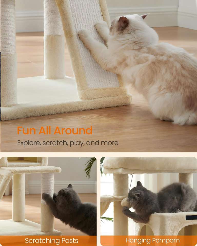 Árbol para Gatos Starmon, Torre para Gatos, Condominio de Múltiples Niveles con Percha Ancha, Postes para Rascar y Rampa, Hamaca para Gatos