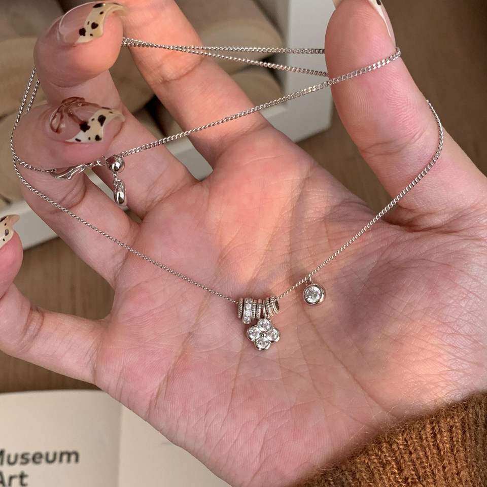 Collar con Colgante de Plata de Ley S925 de Estilo Retro Estrellado, Exquisita Cadena de Clavícula Pequeña y Lujosa para Mujer, Diseño de Cintura Cepillada