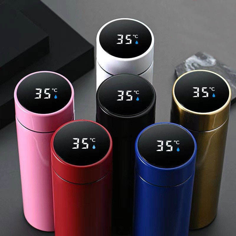 Termo con Pantalla LED de Temperatura y Diseño de Cielo Estrellado de 500 ml - Botella Aislada al Vacío con Diseño de Galaxia