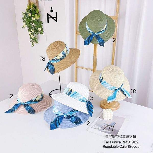 Sombrero de Paja con Cinta de Cielo Estrellado, 8 cm, Ajustable, Unisex, Protección Solar para Verano
