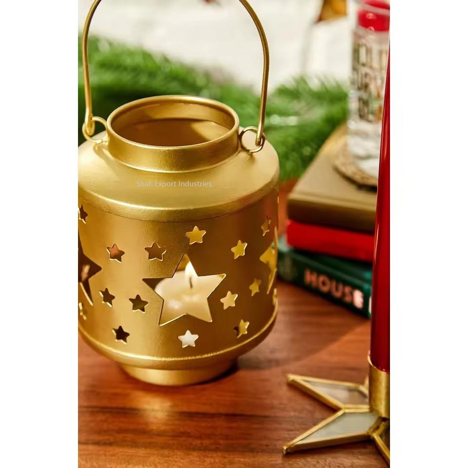 Diseño de corte de estrellas, Mini Navidad decorativos de farolillos, velas de Metal, Color dorado para decoración del hogar y el jardín, farol colgante