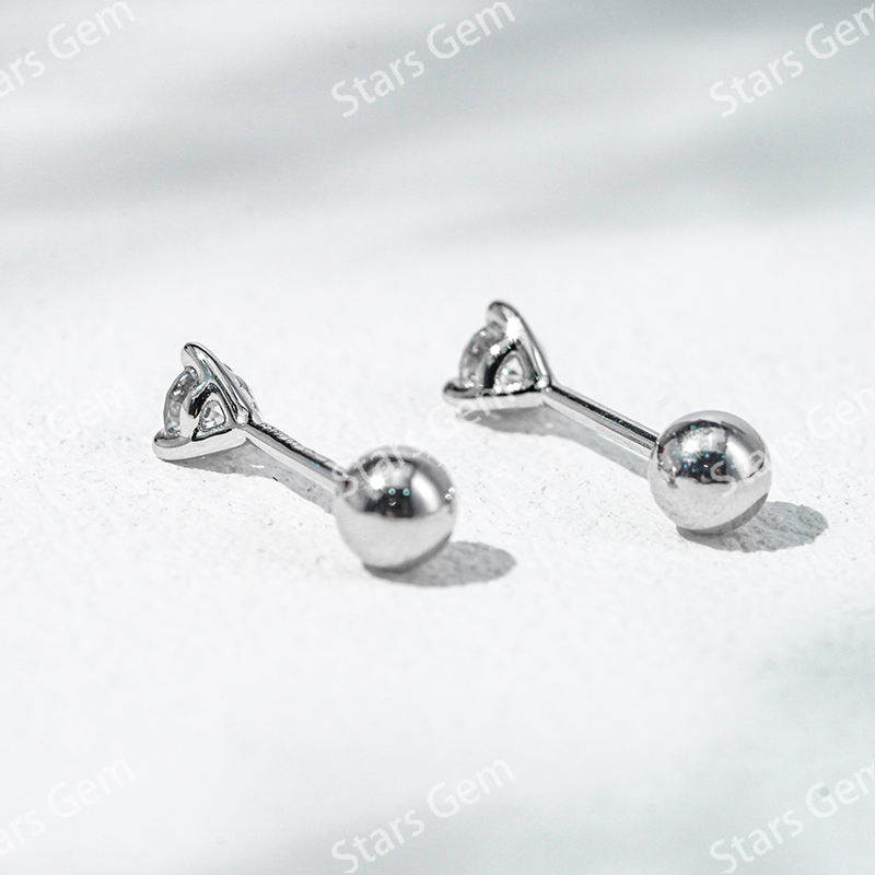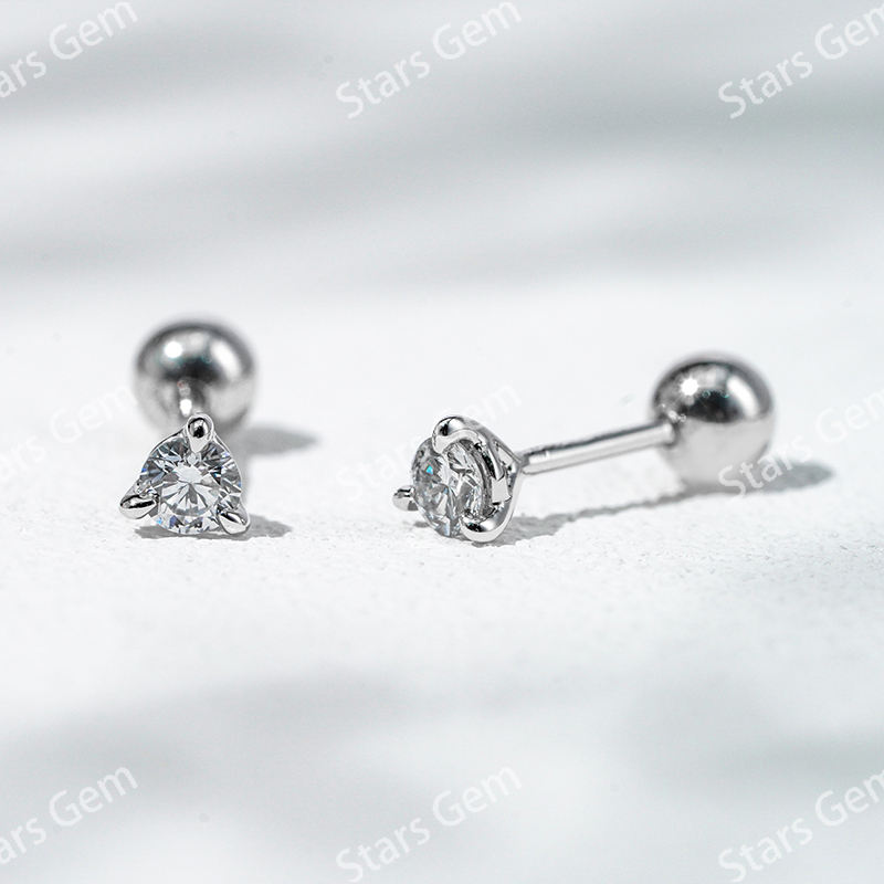 Starsgem 0.1ct 2,8mm Redondo Corte Brillante Lab Grown Diamond 18K Oro Blanco Lujo Unisex Stud Pendientes