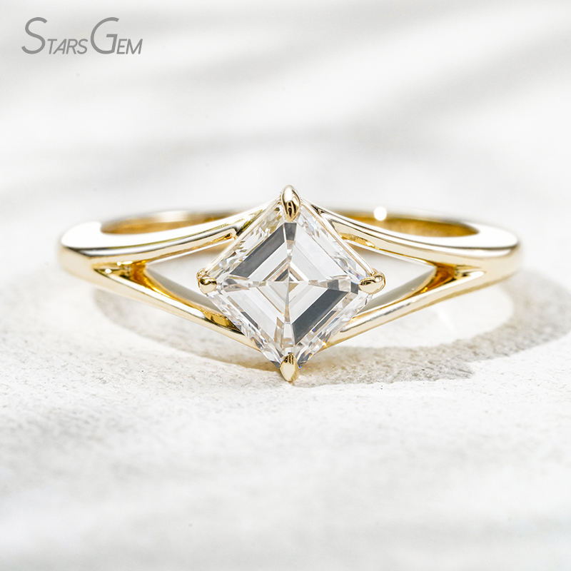 Anillo de Compromiso Solitario Unisex Clásico de Oro Amarillo de 18K con Diamante Cultivado en Laboratorio de Corte Asscher de 1.12-1.16ct 5.6-5.7*5.7mm de Starsgem