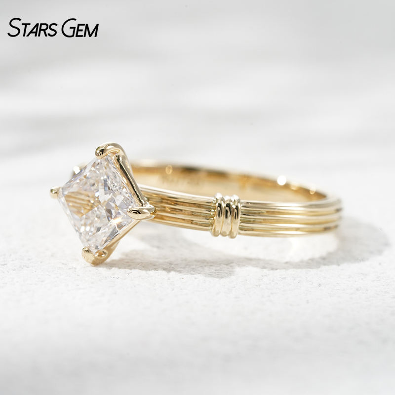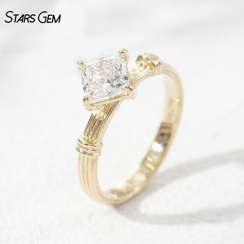 Anillo de Compromiso de Diamante Cultivado en Laboratorio con Corte Princesa en Oro Amarillo Sólido de 18K para Mujer, Estilo Vintage con Banda Romancolumn, Certificado IGI