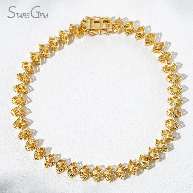 Starsgem 3.79ct Pear Cut Fancy Vivid Yellow Lab Grown Diamond 18K Oro amarillo Lujo Pulsera unisex IGI Certified