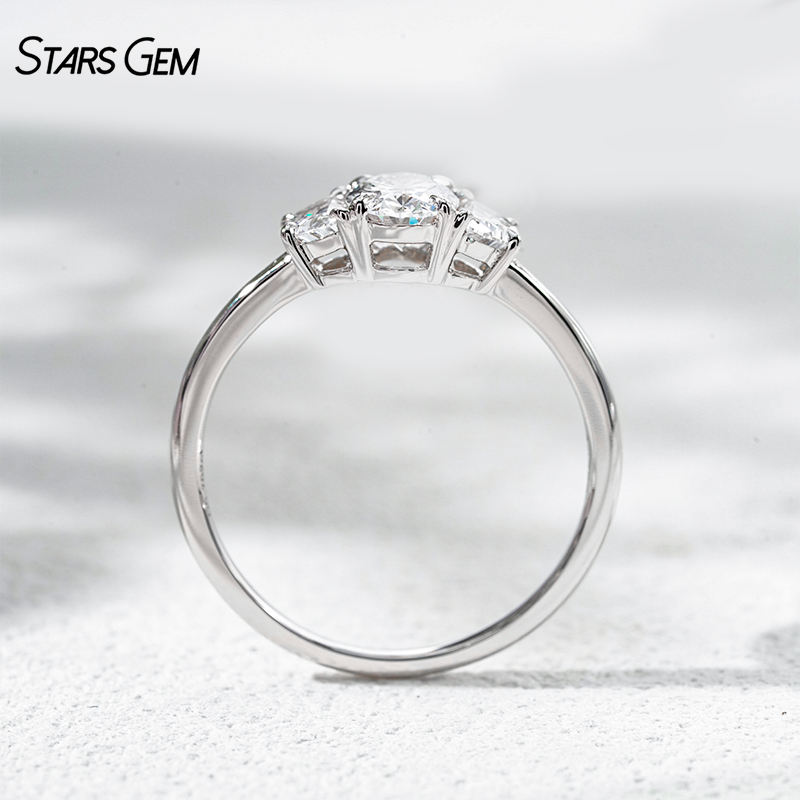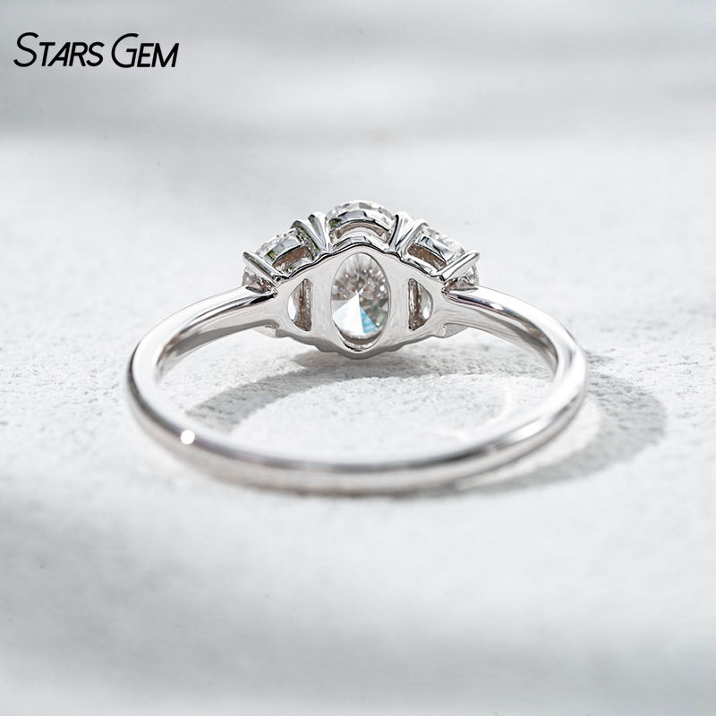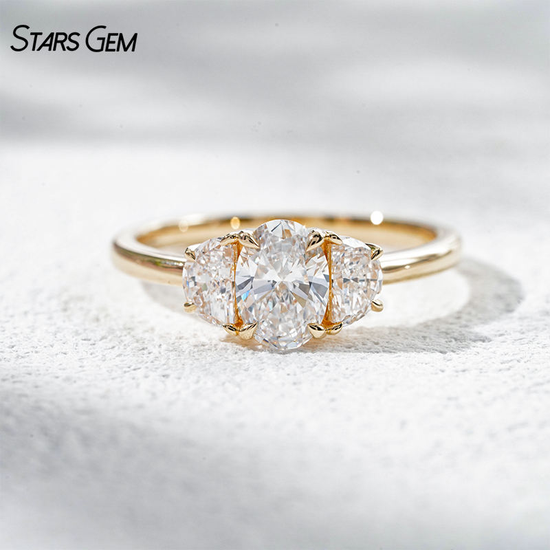 Anillo de Compromiso Clásico de Tres Piedras Personalizado Starsgem, Diamante Cultivado en Laboratorio de Corte Ovalado de 1.1 ct, Color D, Oro Sólido de 18K, Unisex