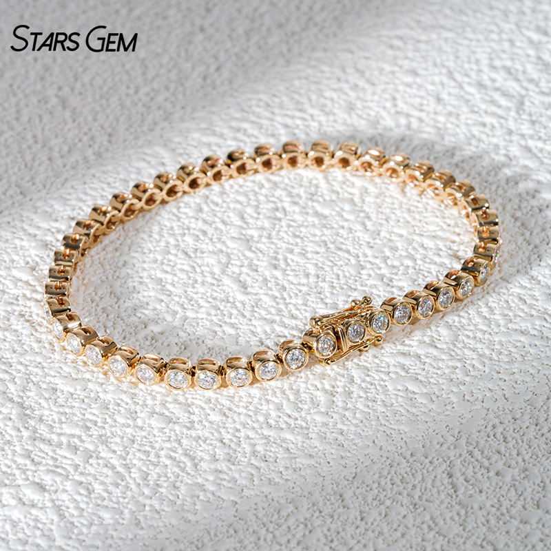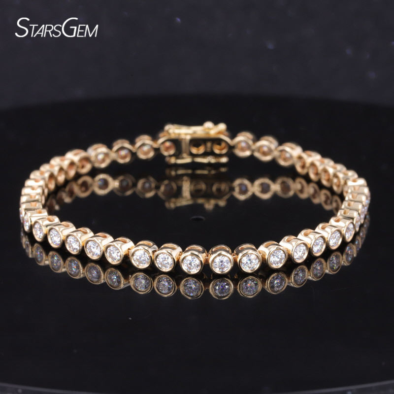 Pulsera de Joyería Fina Starsgem para Mujer, Oro Macizo, Diamante Cultivado en Laboratorio de 4.2ct-5.6, Corte Brillante de 3.1mm, Estilo Bisel Burbuja