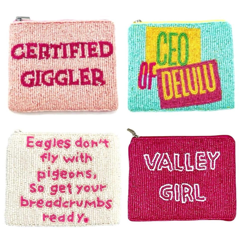 Monedero de cuentas con diseño personalizado, hecho a mano, con cremallera, con cita divertida, mini bolso de mano, regalo al por mayor, compacto