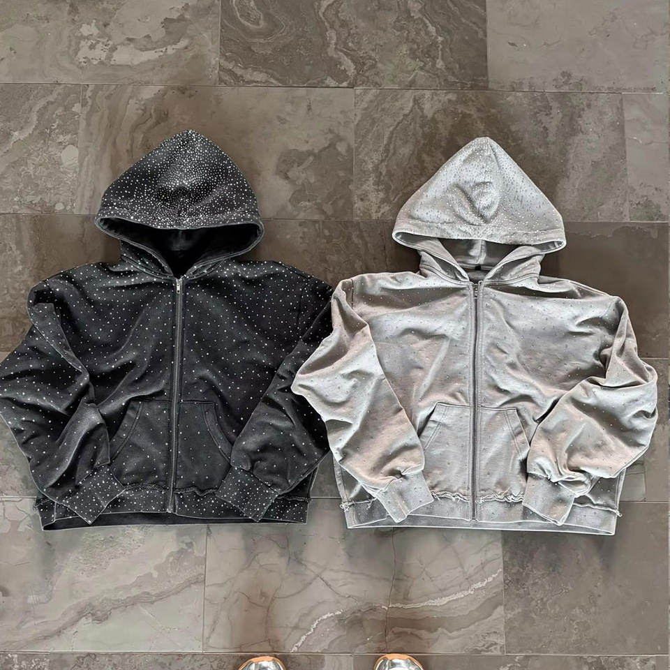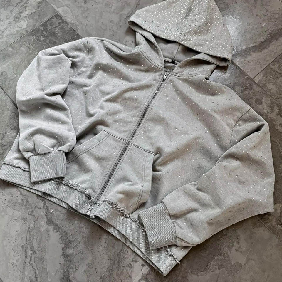 Sudadera con Capucha de Invierno con Pedrería y Estampado Digital, Estilo Rockstar, Te Pone en Valor, en Tela de Mezcla de Algodón