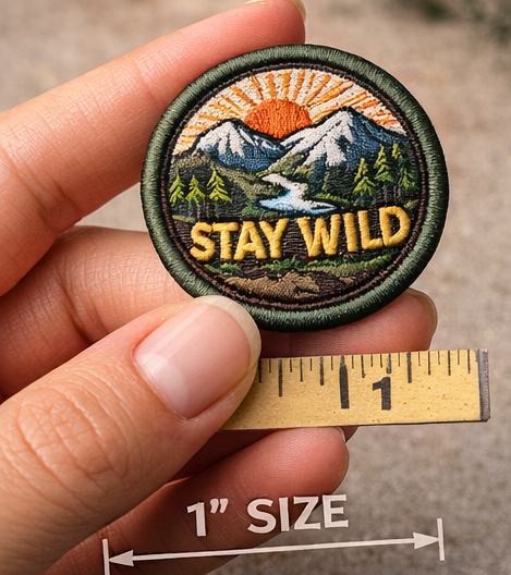 Parche Bordado 'Stay Wild' de 2.5 Pulgadas con Decoración en Espiral, Ideal para Gorras, Chaquetas, Bolsos y Manualidades