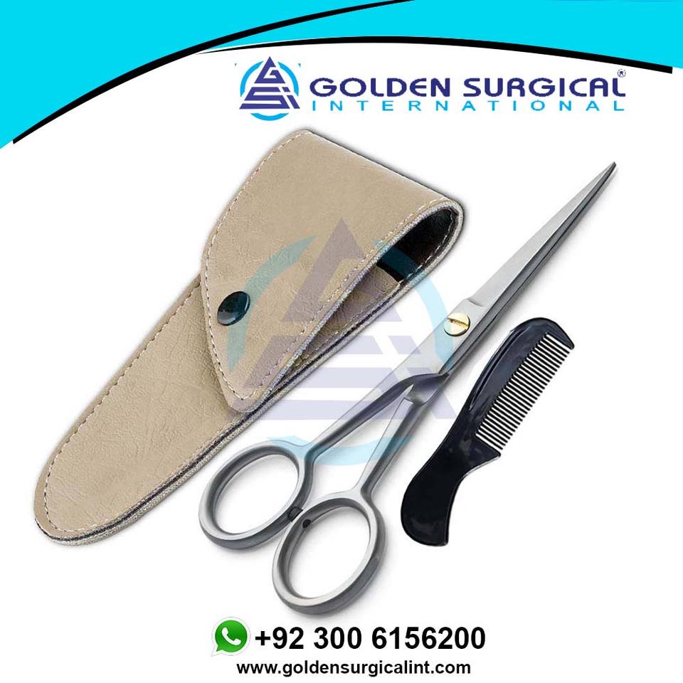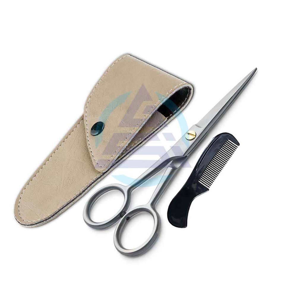 Tijeras de acero para bigote y barba con bolsa de peine, instrumentos de cuidado de belleza Personal para manicura y pedicura, Kit de aseo de viaje