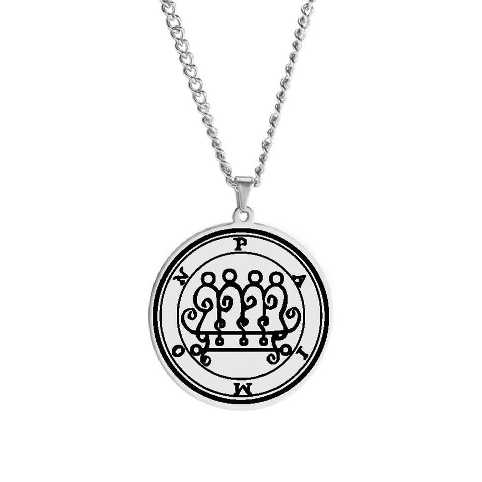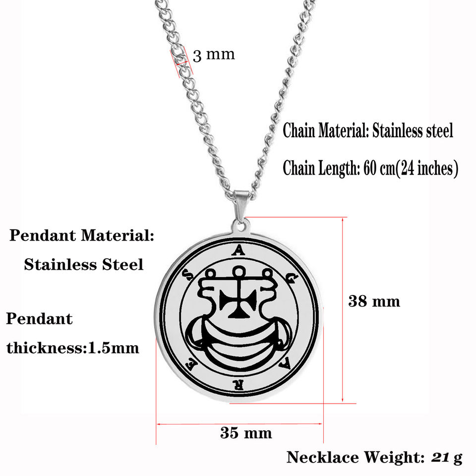 Collar con Colgante de Acero Inoxidable con el Sello de Asmoday, Color Acero, Sello de Origen Demoníaco, Llave Menor de Salomón, Amuleto de Goetia, Talismán