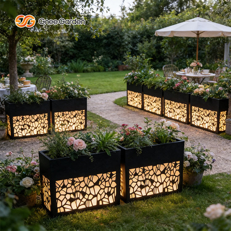 Jardinera Cuadrada Contemporánea de Acero con Recubrimiento en Polvo para Exteriores, 100x50x50 cm