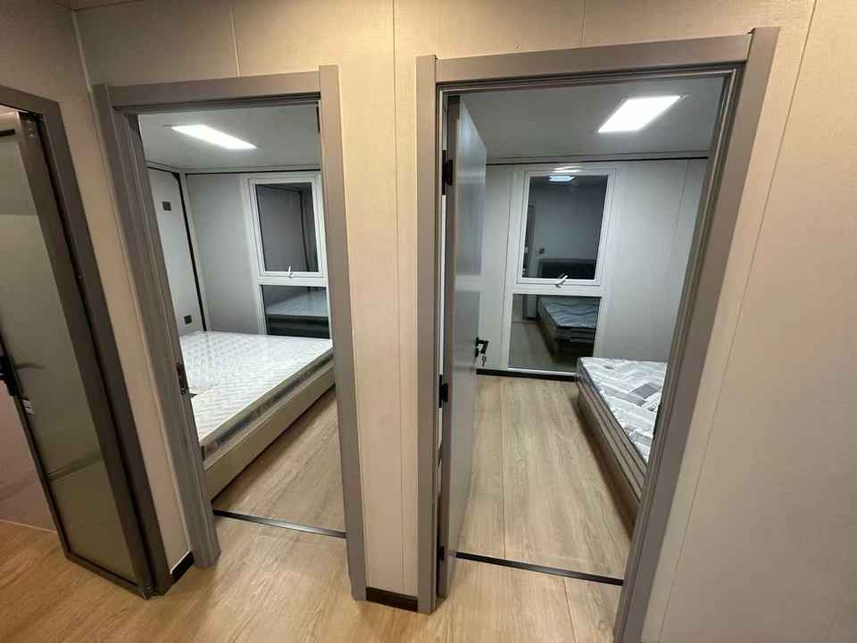 Casa contenedor de oficina modular plegable de acero, techo contenedor extensible con vidrio para uso en exteriores