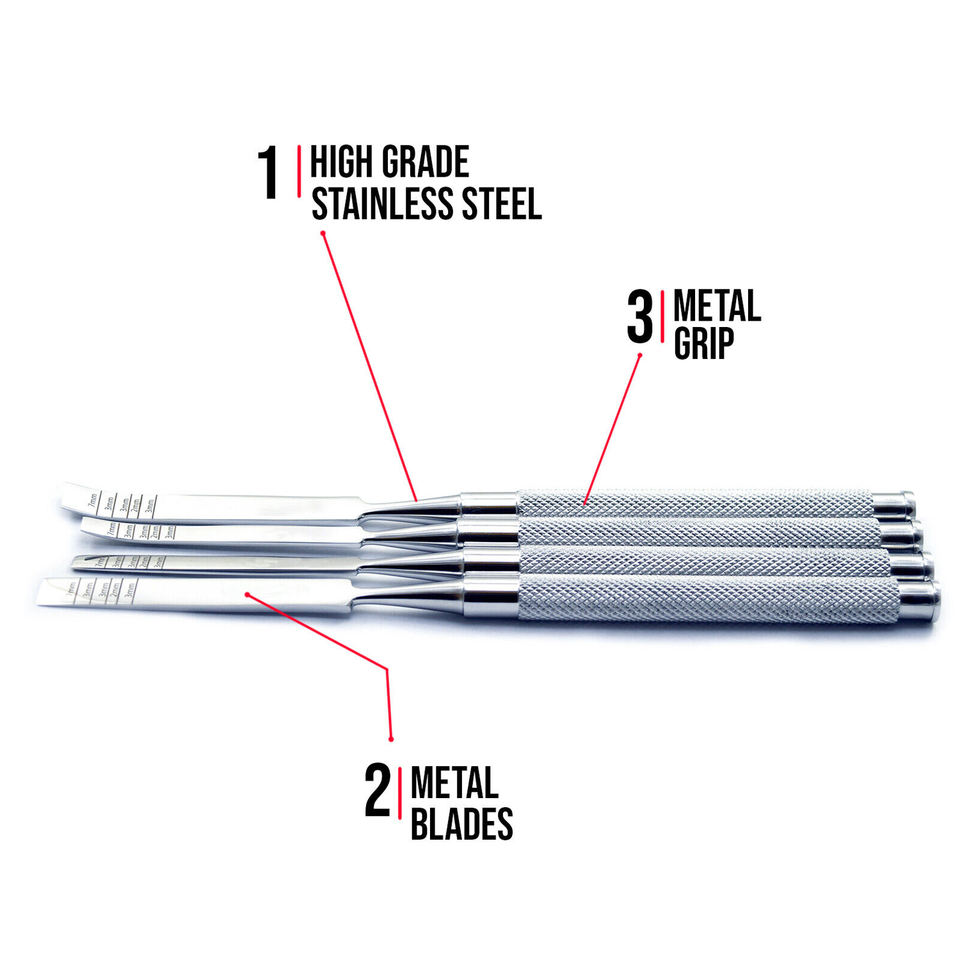 Juego de Osteótomos Expansibles de Acero para Limpieza y Relleno Dental, Cincel, Elevador Perióstico y Cureta Ósea