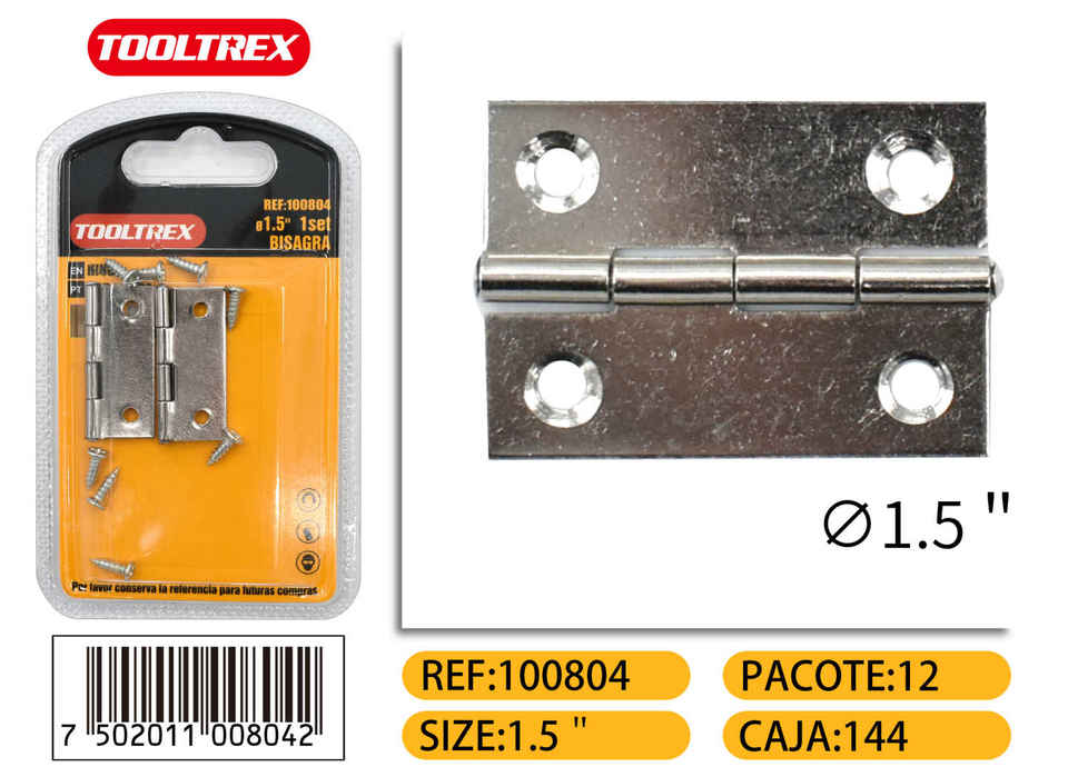 Bisagra de Acero de 1.5 Pulgadas con 4 Orificios y Apertura de 180 Grados para Puerta, Diseño Minimalista