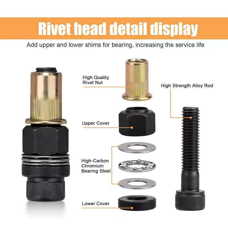 Pistola Remachadora Manual Eléctrica de Acero con Rosca Completa y Cabeza Plana para Uso Automotriz M3-M12