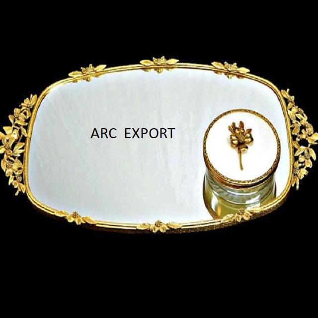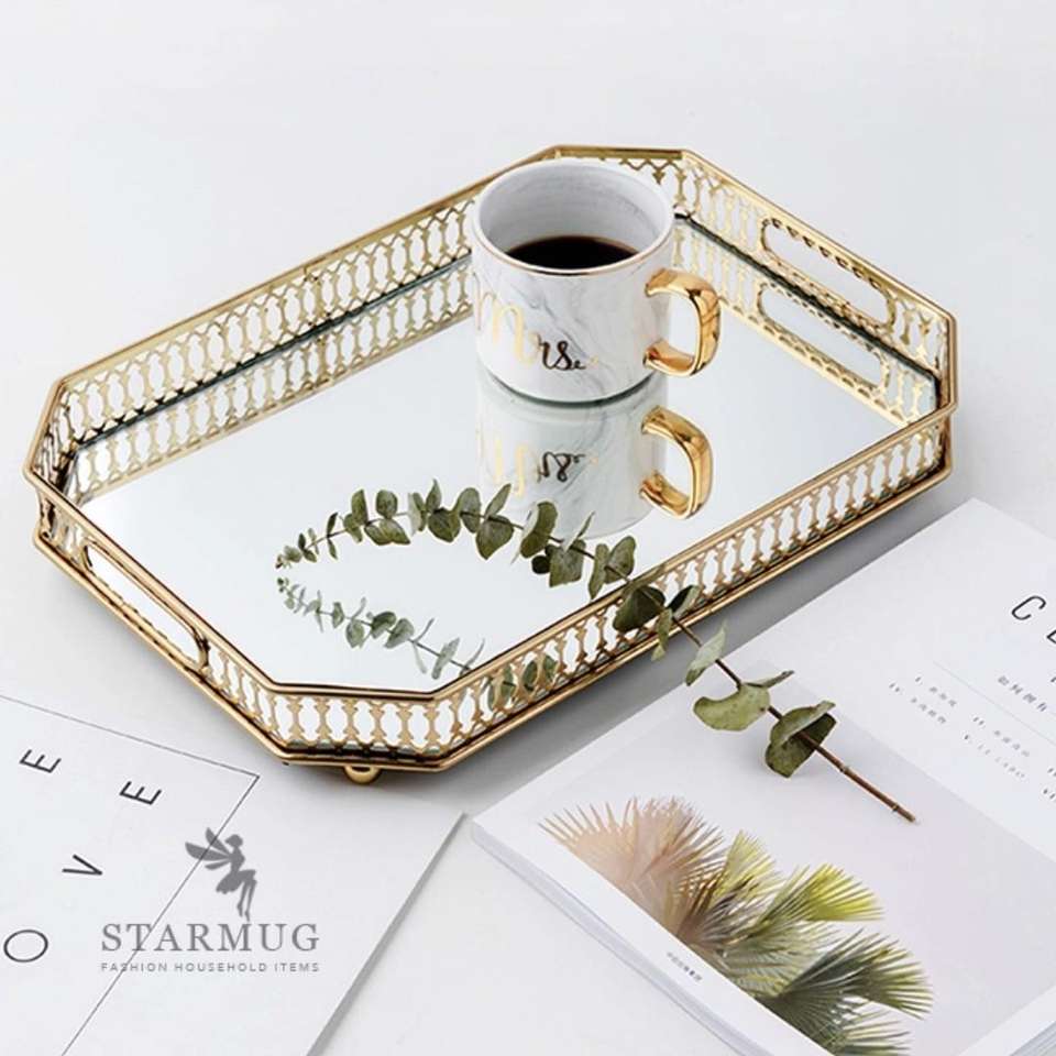 Nueva bandeja de diseño antiguo con bandeja con asa dorada hecha de bandeja de metal para utensilios de cocina para el hogar, suministros de accesorios a precio razonable