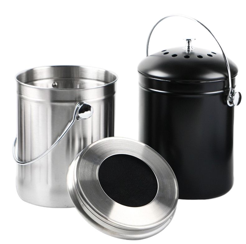 Cubo de acero inoxidable para compost de basura, Cubo de cocina, Cubo de almacenamiento con tapa y contenedor usado