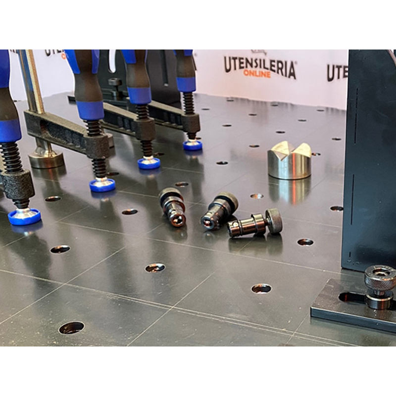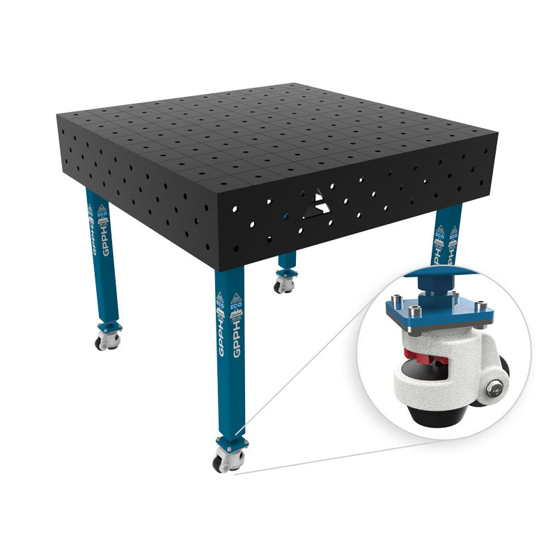 SteelEco GPPH Banco de soldadura con ruedas de 1x1m, 8mm de grosor, orificios de 16mm, rejilla de 100x100mm