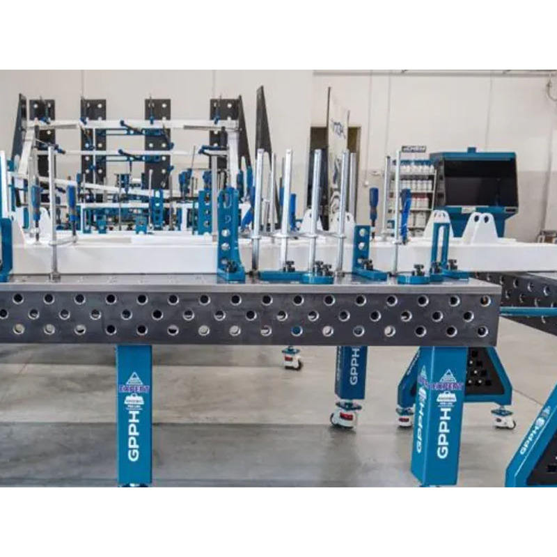 SteelExpert GPPH Banco de soldadura con ruedas de 3x1,48 m, 25mm de espesor, orificios de 28mm, rejilla diagonal
