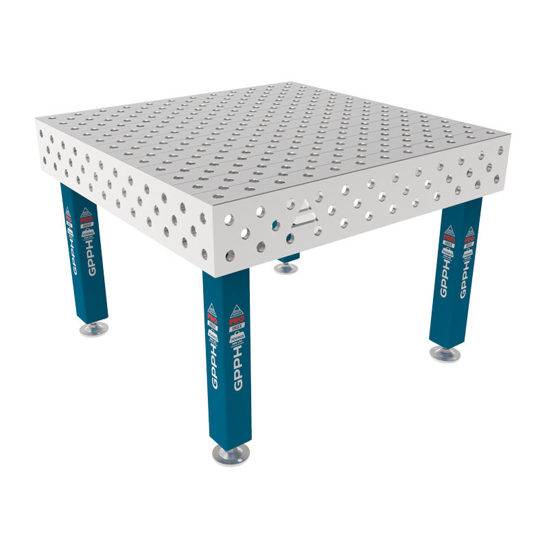 Banco de soldadura SteelMax INOX GPPH 1,2x1,2 m, 15mm de espesor, 28mm agujeros, rejilla diagonal
