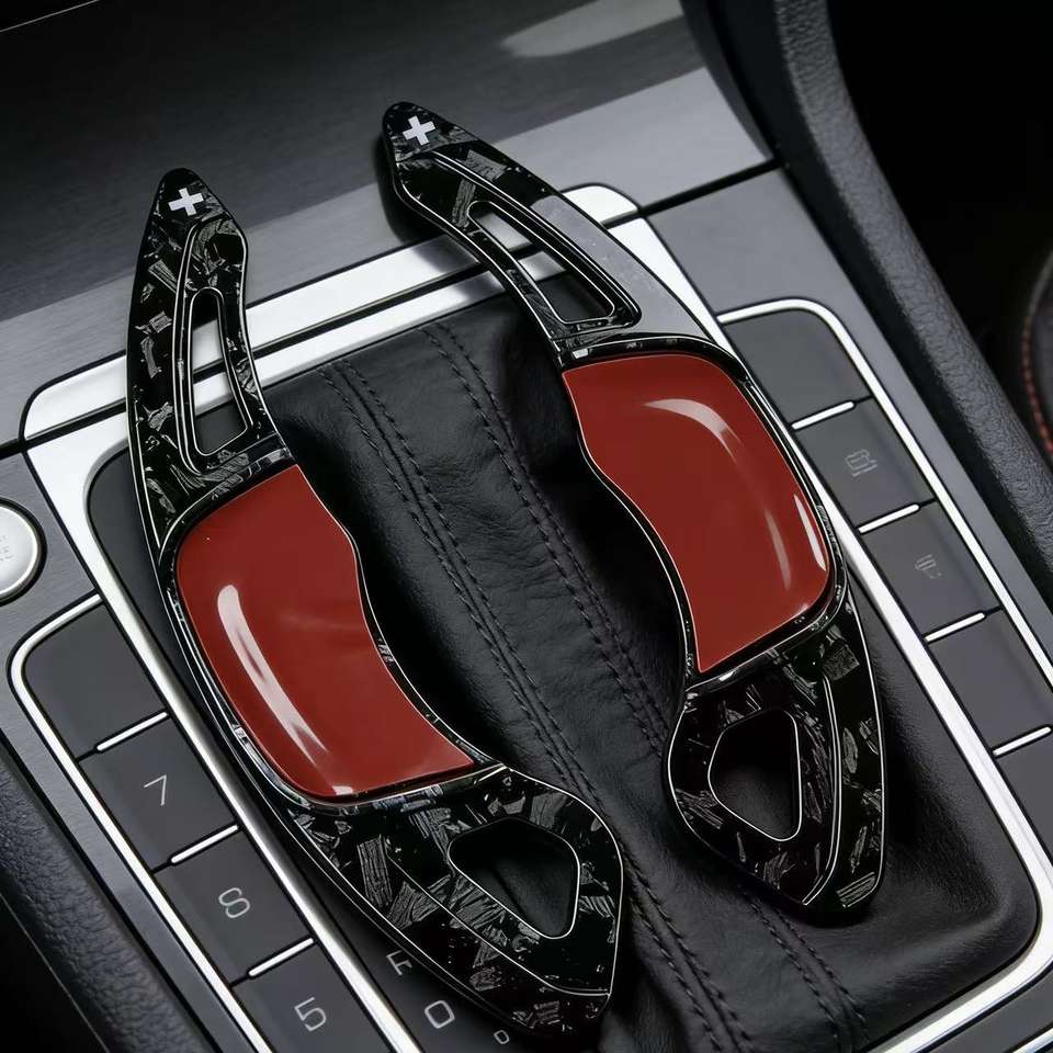 Cubierta de Extensión para Palanca de Cambios en el Volante, Decoración de Fibra de Carbono Forjada, Negro Brillante para VW Golf 7/Lamando GTS/POLO GTI