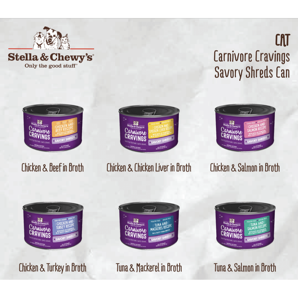 Snacks Carnivore Cravings de Stella & Chewy's para Gatos - Apto para Todas las Edades (Lata de 5.2 oz) Pollo y Salmón
