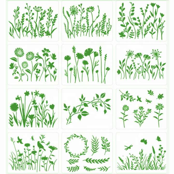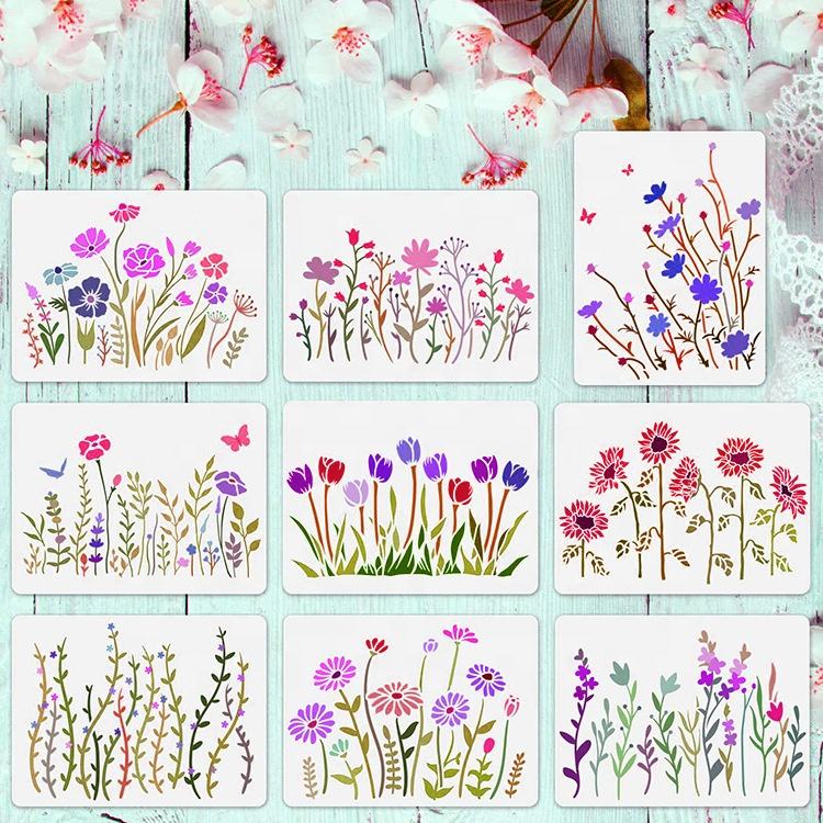 Plantillas para dibujar Flores, conjunto de plantillas de girasol/Margarita/tulipán/flores salvajes