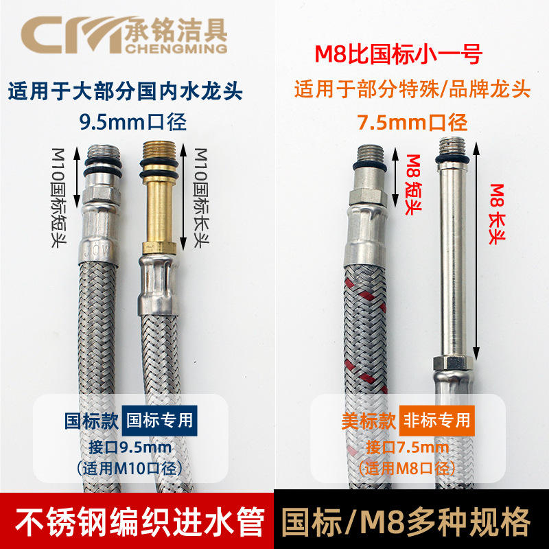 Manguera de Suministro de Agua Trenzada de Acero Inoxidable, Paso a Paso, M10 M8 1/4 Pulgadas de Diámetro Interior, Manguera Flexible para Plomería