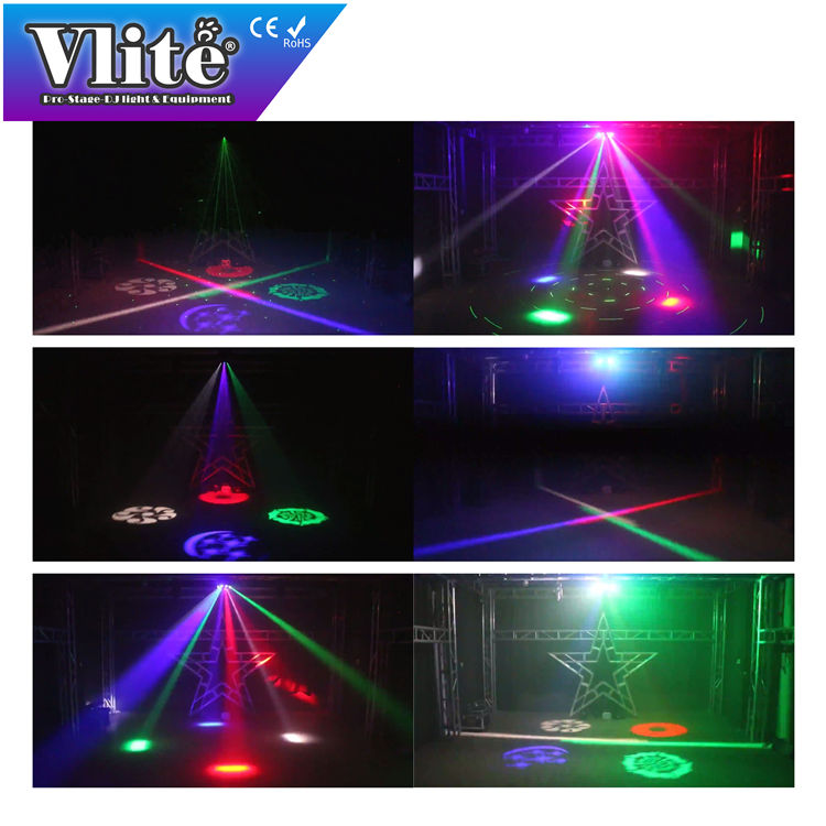Efecto:4 GOBO, 4 línea, 8 haz, 16 patrones del laser