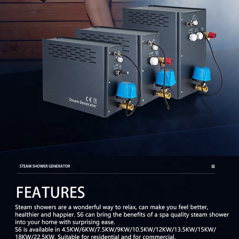 Generador de vapor eléctrico Stepon de fábrica, inteligente y nuevo, 4.5KW/6KW/9KW/12KW/15KW/18KW para sauna/baño de vapor, control WiFi y APP